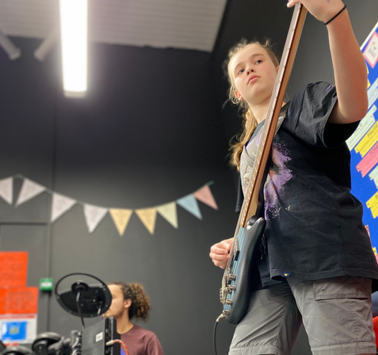 Singing, Instrument playing and composing. Working with industry professionals and looking at different techniques and styles the group develop their singing skills, play in a band and also write their own music and lyrics. All our shows include music and song this class supports and encourages the multi-skilled performers of the future.